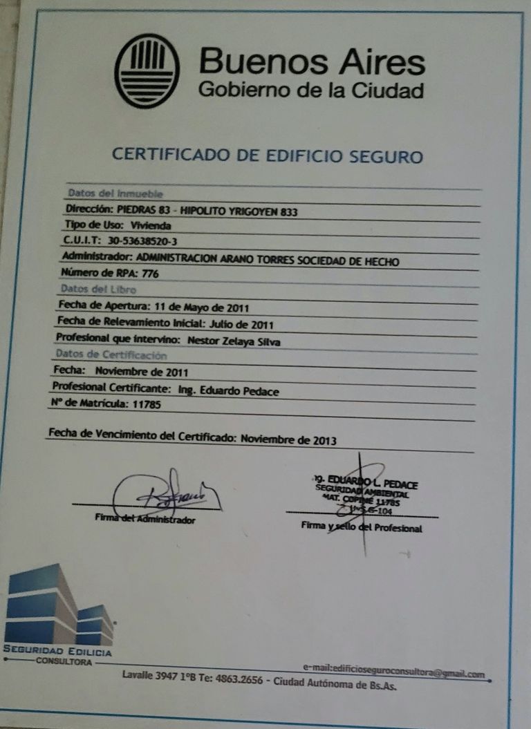- Certified Building Safety: Our building has received a Safety Building Certificate from the Government of the City of Buenos Aires, confirming it meets all required safety and security standards.